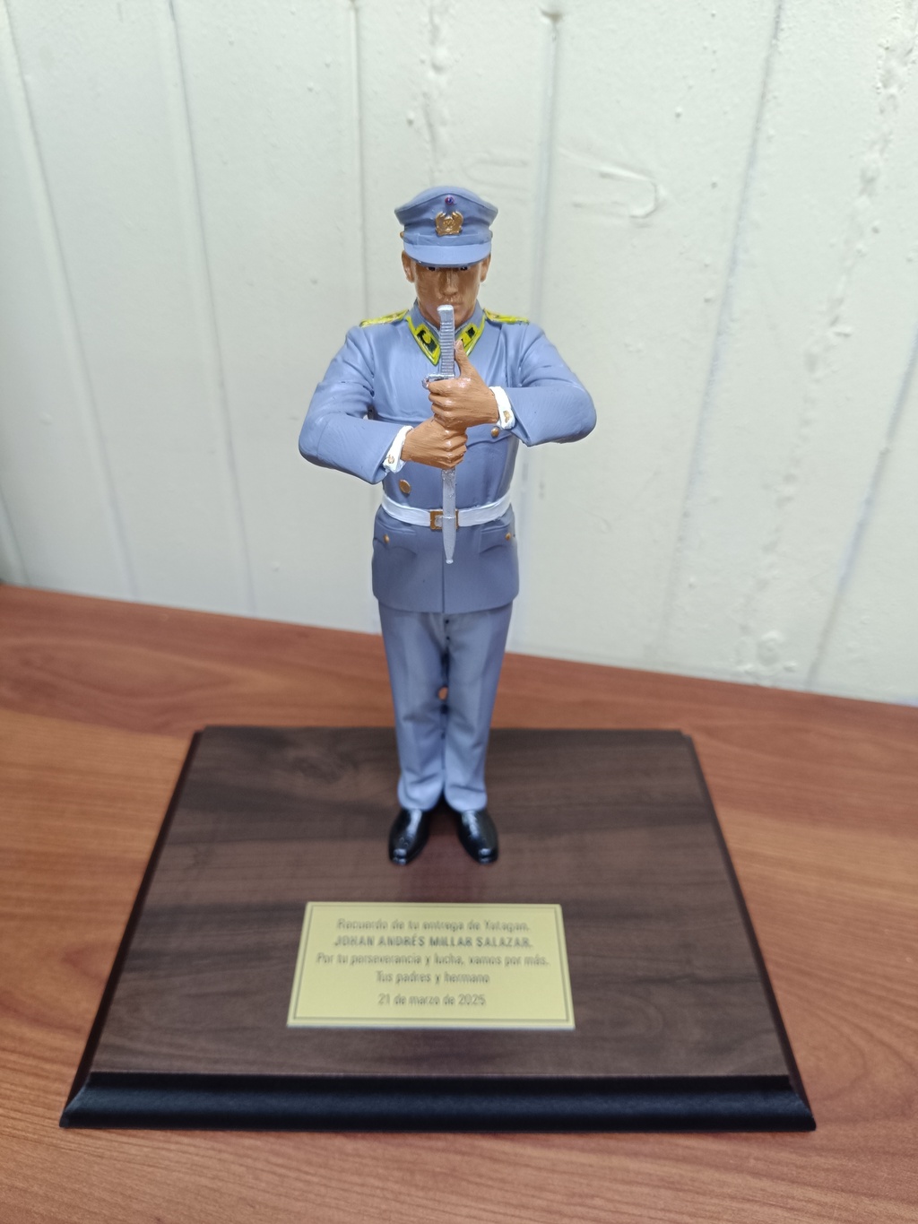 Esta figura es un símbolo de orgullo nacional que refleja la esencia del servicio y la lealtad de nuestros dragoneantes. Ideal para conmemorar eventos especiales o embellecer tu espacio, es un regalo significativo que resalta la importancia de nuestra historia y tradiciones.